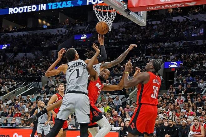 比赛一开场的跳球,申京压根就没跳。毕竟对面是文班亚马,也没必要费这个力气。但如果要说申京害怕文班亚马,那可不是。要知道申京职业生涯最高得分,就是面对文班亚马拿到的。而且火箭队和文班亚马之间,自选秀抽签的时候,关系就变得很微妙了。比赛期间,多个回合申京都要求队友拉开,自己背身单打文班亚马,还真能进!申京的篮下技术,确实是让文班亚马的封盖没有用武之地。而杜兰特,面对马刺队的防守开局显得很是慢热,投篮差得多。但这和火箭队的阵容配置也有关系,没有一个水准线上的控球后卫,杜兰特只能承担更多的组织工作。因此,在本就能吸引防守的基础上,对手更加变本加厉的针对。