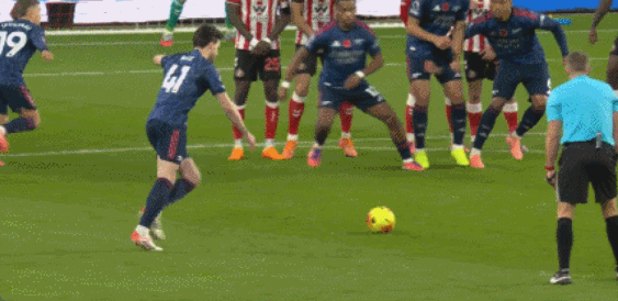 第45+2分钟,阿森纳将球传到禁区内,萨卡头球回做,无人盯防的萨利巴一脚抽射打高,错失扳平良机。