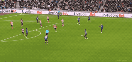 第23分钟,赖斯的传中被头球解围,桑德兰球员之间默契不够,埃泽断球后立即起脚射门,皮球没能命中目标。
